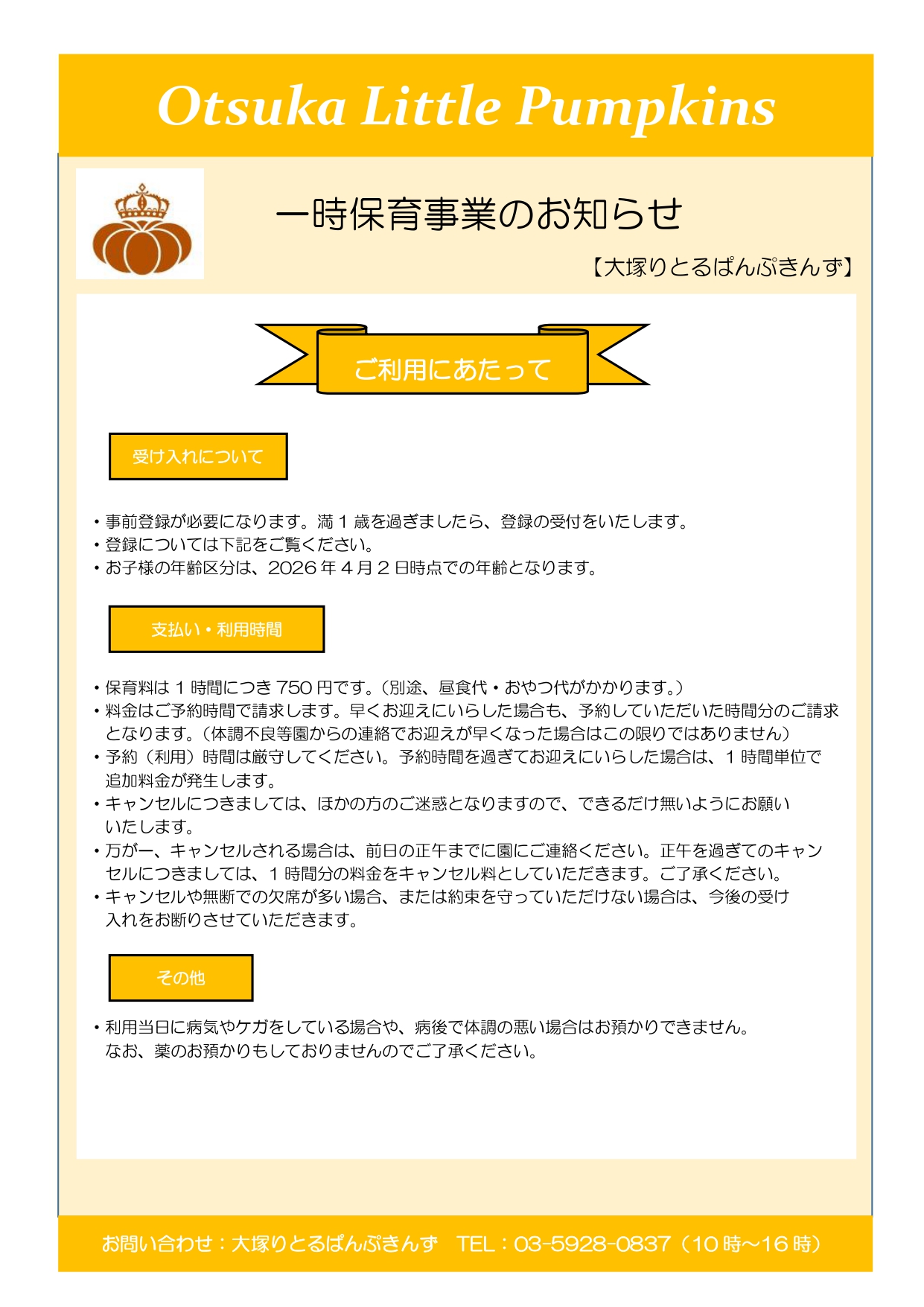 2026年度 一時保育についてのご案内